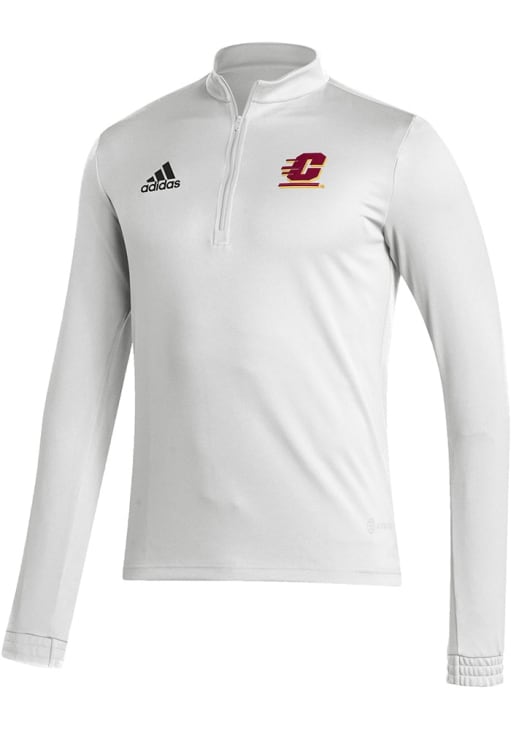 Embrace the warmth and showcase your Chippewas pride with our Central Michigan Chippewas Long Sleeve Qtr Zip Pullover. This Mens White Entrada22 Long Sleeve Pullover offers a heatseal of team logo on upper left chest for the perfect combination of comfort and style. Elevate your everyday look with this must-have Central Michigan Chippewas Long Sleeve Qtr Zip Pullover.