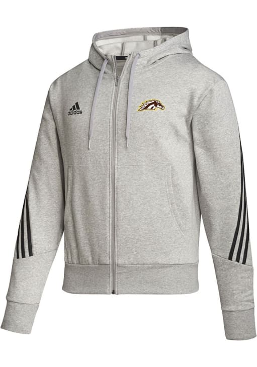 Embrace your Broncos spirit with pride in this Western Michigan Broncos Long Sleeve Full Zip Jacket. This Mens Grey Three Stripe Long Sleeve Full Zip showcases a team logo on upper left chest. You'll want to wear this Western Michigan Broncos Long Sleeve Full Zip Jacket every day.