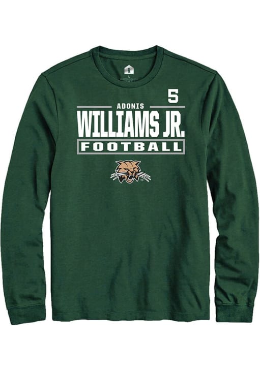 Embrace the spirit of your favorite player in this Ohio Bobcats Green Football NIL Stacked Box Adonis Williams Jr. Long Sleeve Player Tee! This Player T Shirt features a NIL graphic, so everyone will know you cheer for Ohio, Adonis Williams Jr.! This is the perfect Bobcats Player Tee for game days. Stand Up and Cheer!