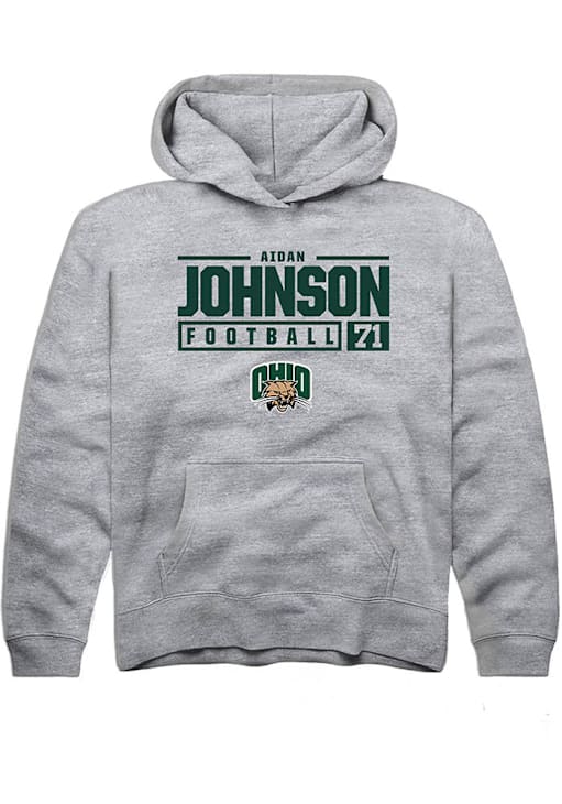 Aidan Johnson Rally Youth Grey Ohio Bobcats NIL Stacked Box Long Sleeve Hooded Sweatshirt