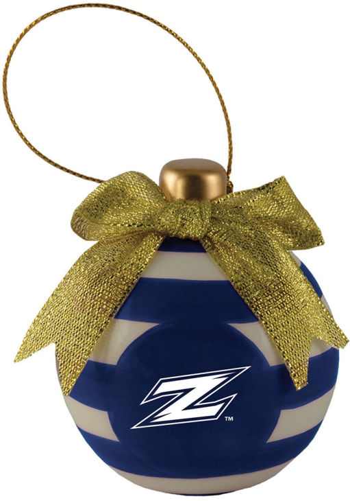 Decorate your Zips tree this holiday season with this Akron Zips Ceramic Bulb Ornament. Add Akron Zips features to your holiday cheer. This Ornament features a circular ball with front team logo, team-color stripes and bow on top. Go Zips!