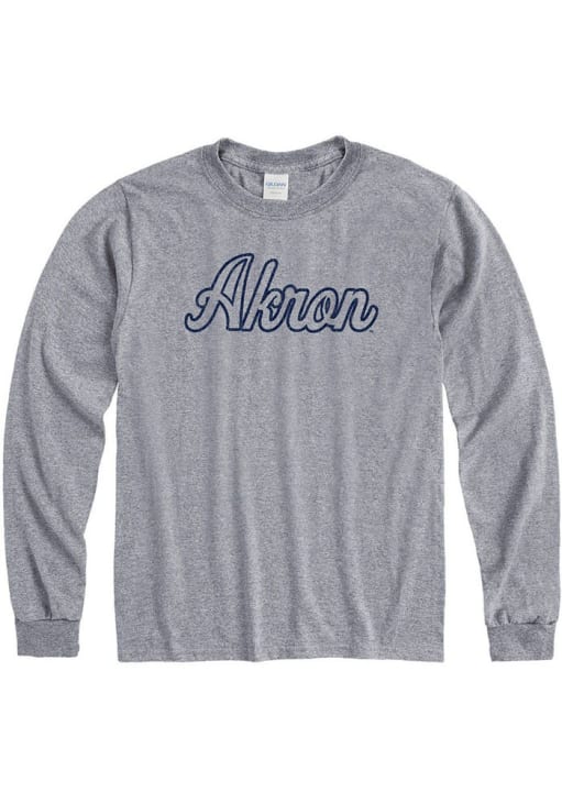 Show your Akron Zips spirit in this Akron Zips Grey T Shirt! This Akron Zips Wordmark Long Sleeve T Shirt makes a great layer for cooler nights cheering on the Zips. Featuring a screen print Akron script wordmark, this Akron Zips Long Sleeve Tee is an essential addition for every fan. Go Zips!