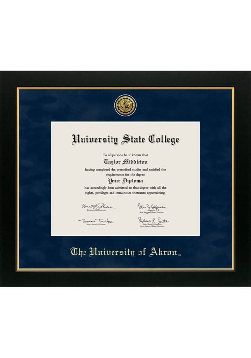 Product Details Product Details Gold embossed school/organizationAssociates/Bachelors/MastersMedallion EngravedSuede matUSA Made Officially Licensed Akron Zips Medallion Manchester Diploma Frame is a great way to keep your Zips memories close. You'll love looking at your favorite Zips moments with this Diploma Frame, which features a Showcase for your university diploma frame. Go Zips!