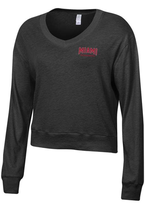 Show your Miami RedHawks spirit in this Miami of Ohio Black T-Shirt! This Miami of Ohio Slouchy Long Sleeve T-Shirt makes a great layer for cooler nights cheering on the Redhawks. Featuring a screen print graphics, this Miami RedHawks Long Sleeve LS Tee is an essential addition for every fan. Go RedHawks!
