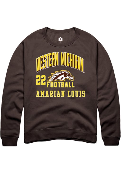 Support your Western Michigan Broncos and favorite Amarian Louis in this Western Michigan Broncos Mens Brown Football NIL Arch Logo Player Crew. This Crew Sweatshirt features a NIL graphic, and is sure to stand out in the stadium. Perfect to wear on game day or any day!