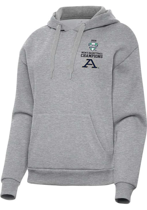 Womens Akron Zips Grey Antigua 2026 MAC Men's Basketball Champs Victory Hooded Sweatshirt