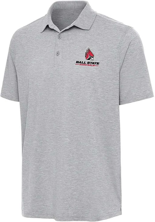 Mens Ball State Cardinals Grey Antigua Par 3 Short Sleeve Polo Shirt