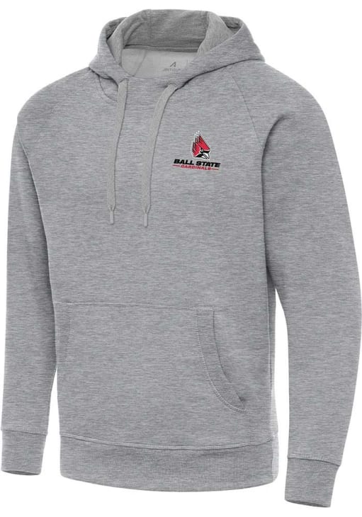 Mens Ball State Cardinals Grey Antigua Victory Hooded Sweatshirt