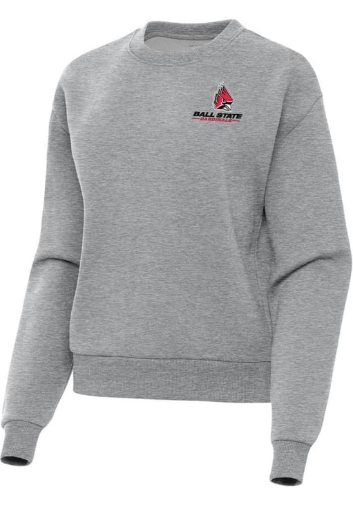 Womens Ball State Cardinals Grey Antigua Victory Crew Sweatshirt