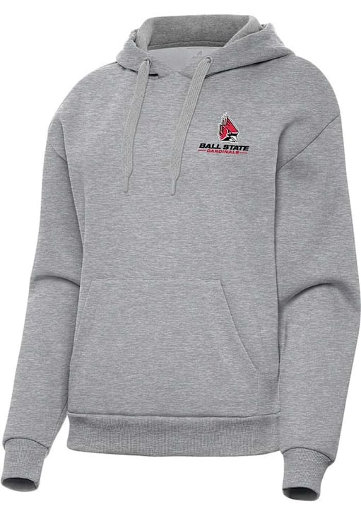 Womens Ball State Cardinals Grey Antigua Victory Hooded Sweatshirt