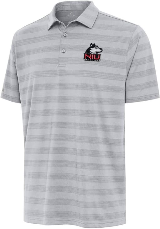 Mens Northern Illinois Huskies Grey Antigua Tunnel Short Sleeve Polo Shirt