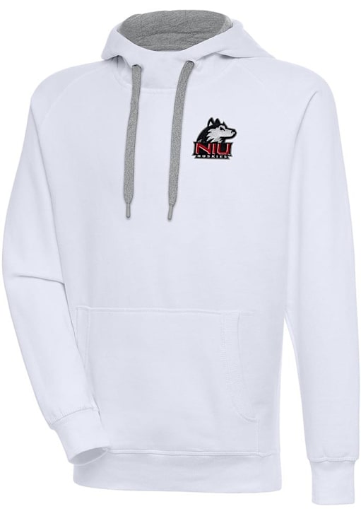 Mens Northern Illinois Huskies White Antigua Victory Hooded Sweatshirt