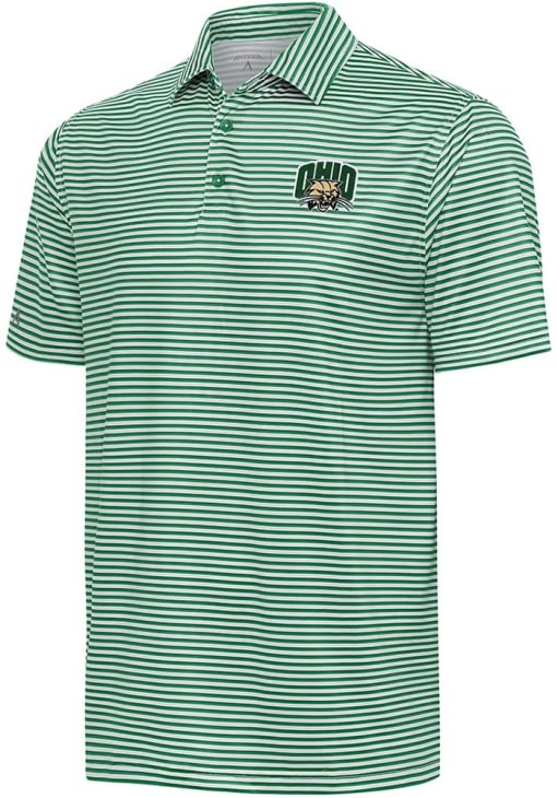 Mens Ohio Bobcats Green Antigua Skills Short Sleeve Polo Shirt