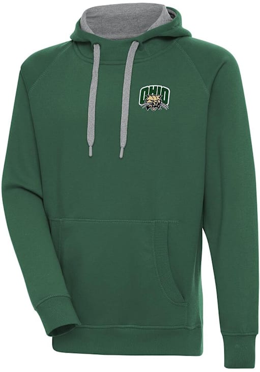 Mens Ohio Bobcats Green Antigua Victory Hooded Sweatshirt