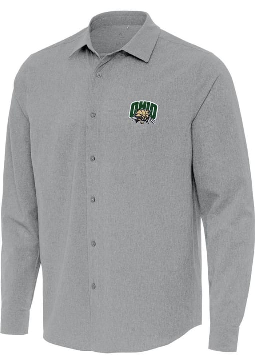 Show your Bobcats spirit show in the office with this Ohio Bobcats Dress Shirt! Embrace your team spirit and showcase it proudly in this Mens Grey Exposure Long Sleeve Long Sleeve Button Down Shirt. This Long Sleeve Dress Shirt features a micro ventilation and woven mesh.