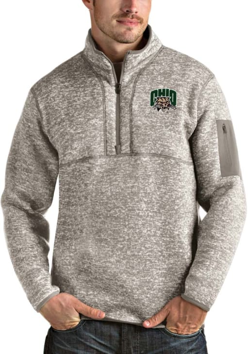 Mens Ohio Bobcats Oatmeal Antigua Fortune Qtr Zip Pullover