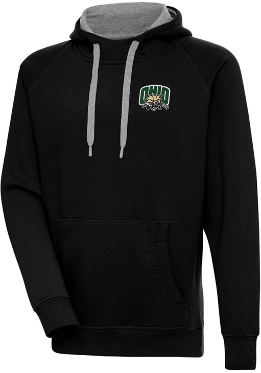 Mens Ohio Bobcats Black Antigua Victory Hooded Sweatshirt