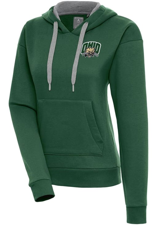 Womens Ohio Bobcats Green Antigua Victory Hooded Sweatshirt