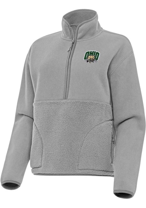 Embrace the warmth and showcase your Bobcats pride with our Ohio Bobcats Long Sleeve Qtr Zip. This Womens Grey Figure Long Sleeve Pullover offers a micro fleece on top and sleeves and bonded sherpa on bottom for the perfect combination of comfort and style. Elevate your everyday look with this must-have Ohio Bobcats Long Sleeve Qtr Zip.