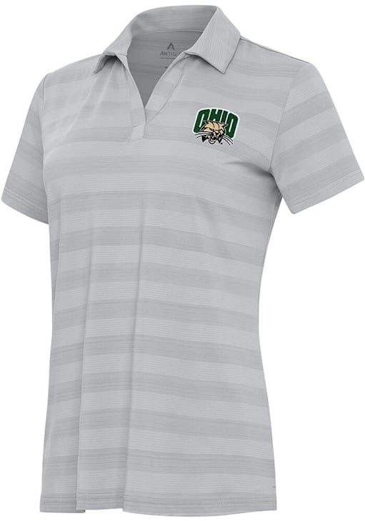 Womens Ohio Bobcats Grey Antigua Tunnel Short Sleeve Polo Shirt