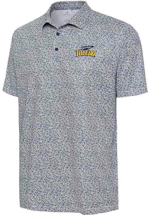Enhance your professional style with this striking Mens Navy Blue Short Sleeve Polo Shirt! Showcase your team pride among colleagues with this exceptional Toledo Navy Blue Field Ditsy Short Sleeve Polo. Stand out and make a statement in this Toledo Rockets Short Sleeve Polo, featuring a team graphic embroidered on front left chest that adds a touch of distinction to your look.