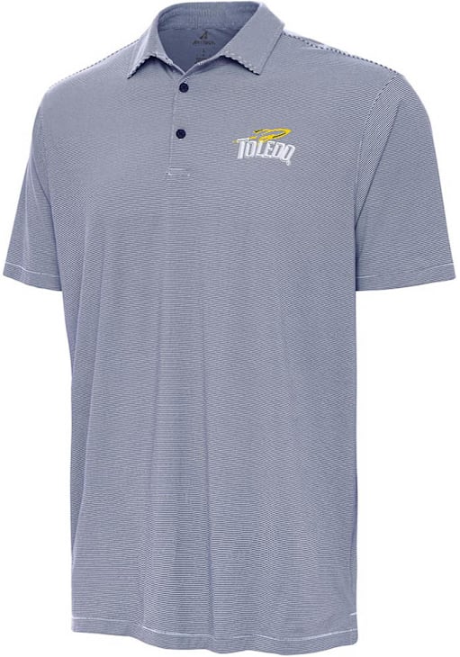 Enhance your professional style with this striking Mens Navy Blue Short Sleeve Polo Shirt! Showcase your team pride among colleagues with this exceptional Toledo Navy Blue Twine Short Sleeve Polo. Stand out and make a statement in this Toledo Rockets Short Sleeve Polo, featuring a team logo embroidered on left chest that adds a touch of distinction to your look.