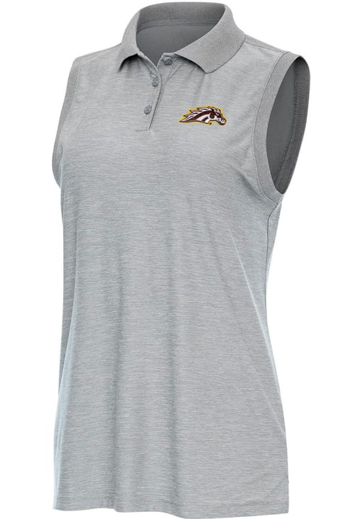 Elevate your tailgating style with this adorable Western Michigan Broncos Womens Polo Shirt! Stay cool and fashionable with our Grey Recap Sleeveless Shirt. Discover the unique features of this WMU Broncos Polo Shirt that will surely catch your eye.