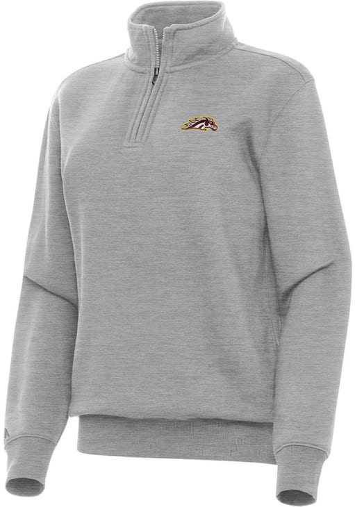 Embrace the warmth and showcase your Broncos pride with our Western Michigan Broncos Long Sleeve Qtr Zip. This Womens Grey Victory Long Sleeve Pullover offers a heavyweight cotton polyester brushed back fleece for the perfect combination of comfort and style. Elevate your everyday look with this must-have Western Michigan Broncos Long Sleeve Qtr Zip.