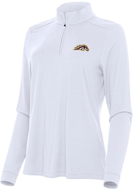 Embrace the warmth and showcase your Broncos pride with our Western Michigan Broncos Long Sleeve Qtr Zip. This Womens White Intent Long Sleeve Pullover offers a solid, soft brushed fabrication for the perfect combination of comfort and style. Elevate your everyday look with this must-have Western Michigan Broncos Long Sleeve Qtr Zip.