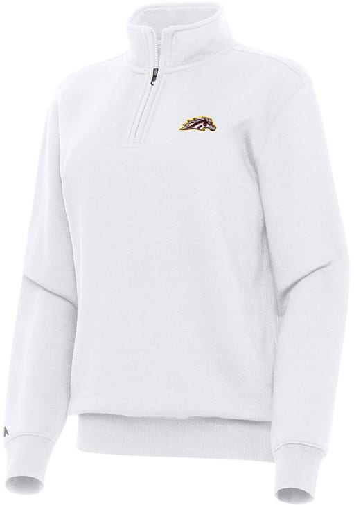 Embrace the warmth and showcase your Broncos pride with our Western Michigan Broncos Long Sleeve Qtr Zip. This Womens White Victory Long Sleeve Pullover offers a heavyweight cotton polyester brushed back fleece for the perfect combination of comfort and style. Elevate your everyday look with this must-have Western Michigan Broncos Long Sleeve Qtr Zip.