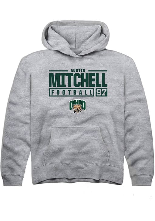 Austin Mitchell Rally Youth Grey Ohio Bobcats NIL Stacked Box Long Sleeve Hooded Sweatshirt