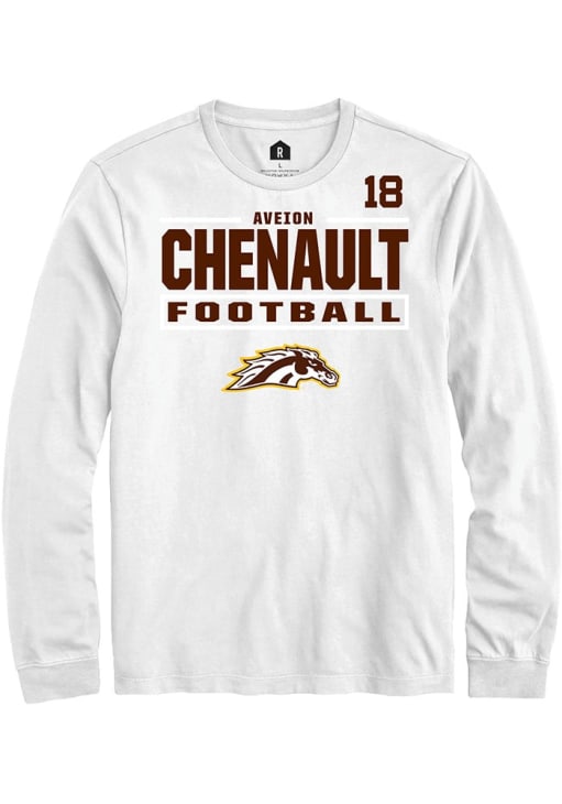 Embrace the spirit of your favorite player in this Western Michigan Broncos White Football NIL Stacked Box Aveion Chenault Long Sleeve Player Tee! This Player T Shirt features a NIL graphic, so everyone will know you cheer for WMU Broncos, Aveion Chenault! This is the perfect Broncos Player Tee for game days. Go Broncos!