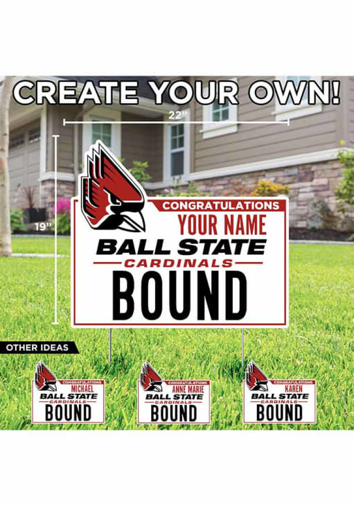 Product Details Product Details First Name ONLY.Approximatley 19"x22"Cut to Shape Weatherproof PlasticMetal Stakes IncludedFull Color PrintCustomized Bound Sign with your name! Officially Licensed Ball State Cardinals Custom Bound Yard Sign will let everyone know you root for the Cardinals proudly. This Yard Sign features a weather resistant material.