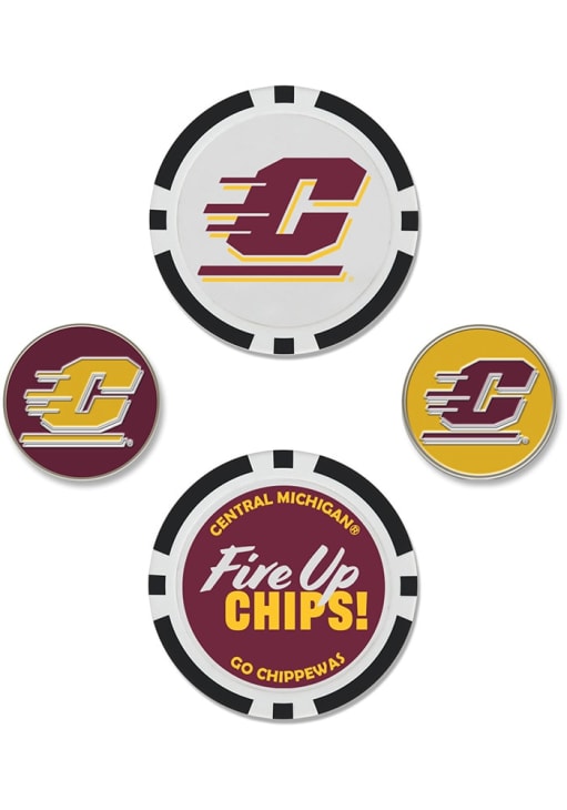 Product Details Product Details Team Effort 4-Pack Set Ball Markers4-Pack setTeam or league logo on each markerTwo oversized ball markersTwo smaller ball markersPLASTICImported Officially Licensed This Central Michigan Chippewas Golf Ball Marker is a great way to show your team spirit on the green. Keep track of where your golf ball landed with this Golf Ball Marker, which features a team logo and colors.