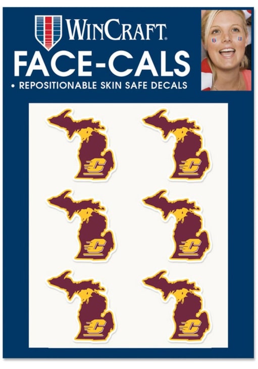 Show off your Chippewas pride with this Central Michigan Chippewas 6pk State Shape Tattoo. This Tattoo features a team logo and colors.