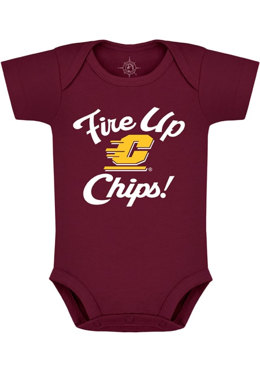 Your little Chippewas fan will look adorable in this Baby Maroon Central Michigan Chippewas Fire Up One Piece! This Central Michigan Chippewas Romper features a screenprint team graphic.