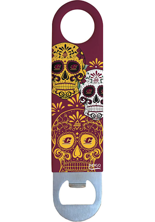 Show your Chippewas pride while opening a bottle of your favorite drink with this Central Michigan Chippewas Bottle Opener. This Bottle Opener features a dia de los muertos print with team colors. This Bottle Opener is a must-have for any Chippewas fan's bar. Hail Chippewa!