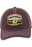 Product Details Product Details Zephyr Headrest HatFront retro team patchContrast stitching on crown and visorSide Z logoFabric strap closureCottonCurved BillLow CrownUnstructuredWipe clean with cloth or cleaning kitImported Officially Licensed This Red Chippewas Adjustable Hat features a team logo embroidered on front.