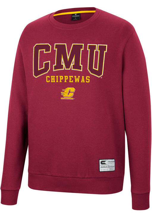 Gear up for the ultimate game day experience with this remarkable Central Michigan ChippewasMens Maroon Scholarship Fleece Crew Sweatshirt! Designed with the true fan in mind, this Chippewas Long Sleeve Crew Sweatshirt features a twill applique team name and logo on front chest. Stay warm and comfortable with this Mens CMU Chippewas Chippewas Crew Sweatshirt.