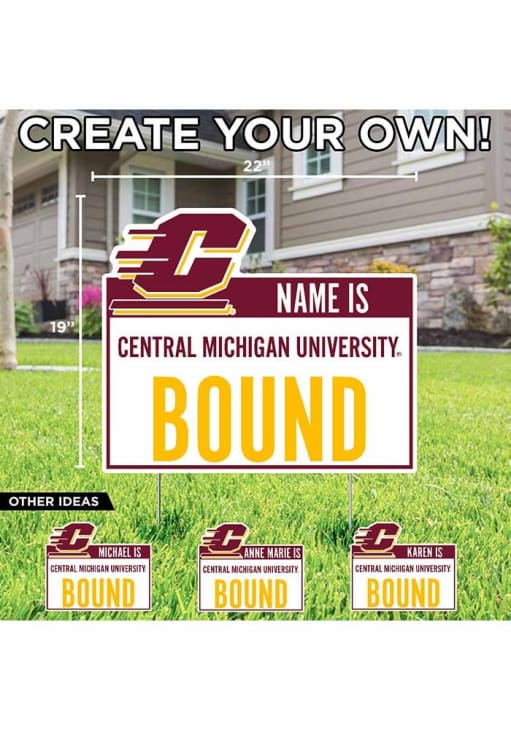 Product Details Product Details First Name ONLY.Approximatley 19"x22"Cut to Shape Weatherproof PlasticMetal Stakes IncludedFull Color PrintCustomized Bound Sign with your name! Officially Licensed Central Michigan Chippewas Personalized School Bound Yard Sign will let everyone know you root for the Chippewas proudly. This Yard Sign features a weather resistant material.