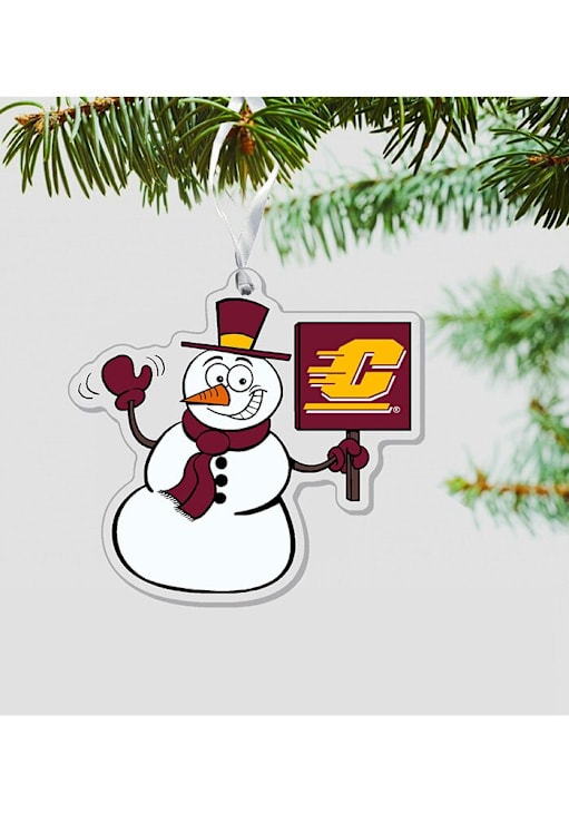 Product Details Product Details Full Color Team Logo¼” Clear Acrylic Laser CutPerfect for Holiday Décor or Gift GivingIncludes Ribbon for Easy HangingApprox Size 3.5” x 3.5”Snowman design featured in team colors Officially Licensed Decorate your Chippewas tree this holiday season with this Central Michigan Chippewas Snowman Ornament. Add CMU Chippewas features to your holiday cheer. This Ornament features a Snowman in team colors. Hail Chippewa!