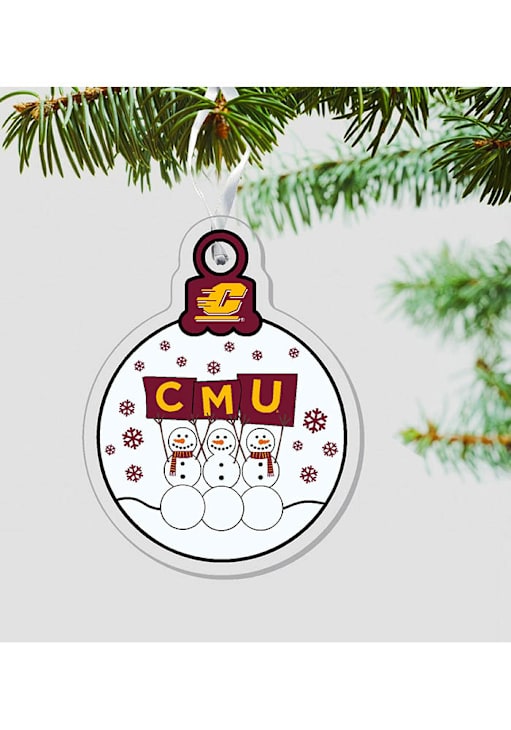 Product Details Product Details Full Color Team Logo¼” Clear Acrylic Laser CutPerfect for Holiday Décor or Gift GivingIncludes Ribbon for Easy HangingApprox Size 3.5” x 3.5”Snowmen ball design featured in team colors Officially Licensed Decorate your Chippewas tree this holiday season with this Central Michigan Chippewas Snowmen Ball Ornament. Add CMU Chippewas features to your holiday cheer. This Ornament features a Snowmen bell in team colors. Hail Chippewa!