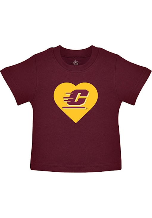 Size Chart for Toddler Girls Maroon Central Michigan Chippewas Heart Short Sleeve T-Shirt