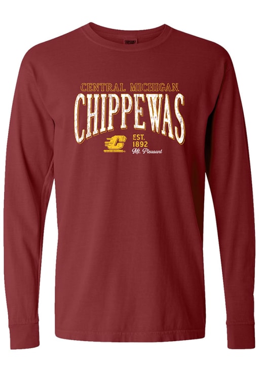 Show your Central Michigan Chippewas spirit in this CMU Chippewas Maroon T-Shirt! This CMU Chippewas Mascot Long Sleeve T-Shirt makes a great layer for cooler nights cheering on the Chippewas. Featuring a screen print team name and logo on center front, this Central Michigan Chippewas Long Sleeve LS Tee is an essential addition for every fan. Hail Chippewa!