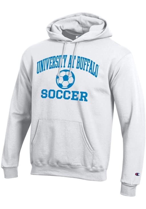 Mens Buffalo Bulls White Champion Soccer Powerblend Hooded Sweatshirt