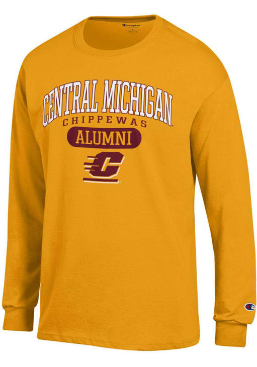 Show your Central Michigan Chippewas spirit in this CMU Chippewas Gold T Shirt! This CMU Chippewas Pill Box Alumni Jersey Long Sleeve T Shirt makes a great layer for cooler nights cheering on the Chippewas. Featuring a printed team graphic on front chest, this Central Michigan Chippewas Long Sleeve Tee is an essential addition for every fan. Hail Chippewa!
