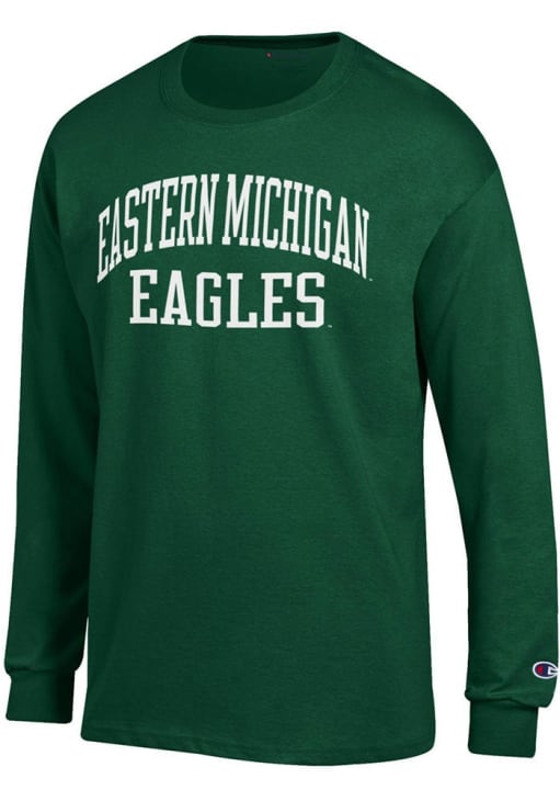 Show your Eastern Michigan Eagles spirit in this Eastern Michigan Green T Shirt! This Eastern Michigan Jersey Long Sleeve T Shirt makes a great layer for cooler nights cheering on the Eagles. Featuring a printed team graphic on front chest, this Eastern Michigan Eagles Long Sleeve Tee is an essential addition for every fan. Go Eagles!
