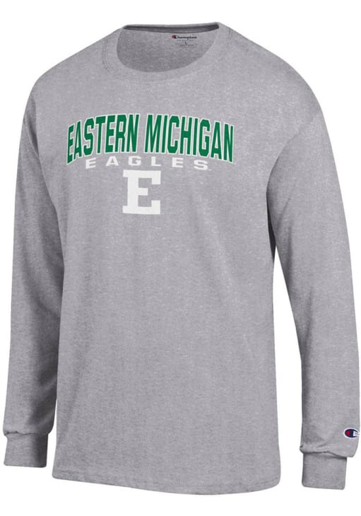 Show your Eastern Michigan Eagles spirit in this Eastern Michigan Grey T Shirt! This Eastern Michigan Double Arch Jersey Long Sleeve T Shirt makes a great layer for cooler nights cheering on the Eagles. Featuring a printed team graphic on front chest, this Eastern Michigan Eagles Long Sleeve Tee is an essential addition for every fan. Go Eagles!