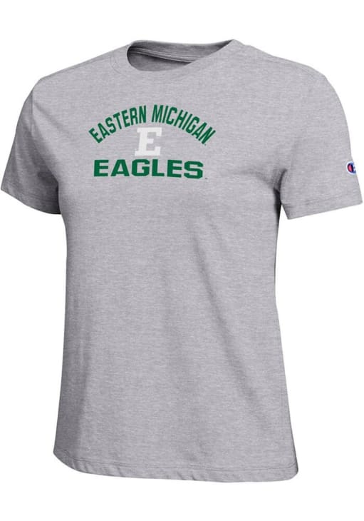 Display your team spirit with this remarkable Eastern Michigan Eagles Grey Arch Mascot Core Short Sleeve T-Shirt! The Eastern Michigan Short Sleeve Tee showcases a center front printed team name and logo that truly sets it apart. Stand out from the crowd and proudly declare your allegiance to the Eagles with this exceptional Grey Eastern Michigan T-Shirt. Go Eagles!