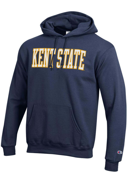 Mens Kent State Golden Flashes Navy Blue Champion Straight Powerblend Hooded Sweatshirt